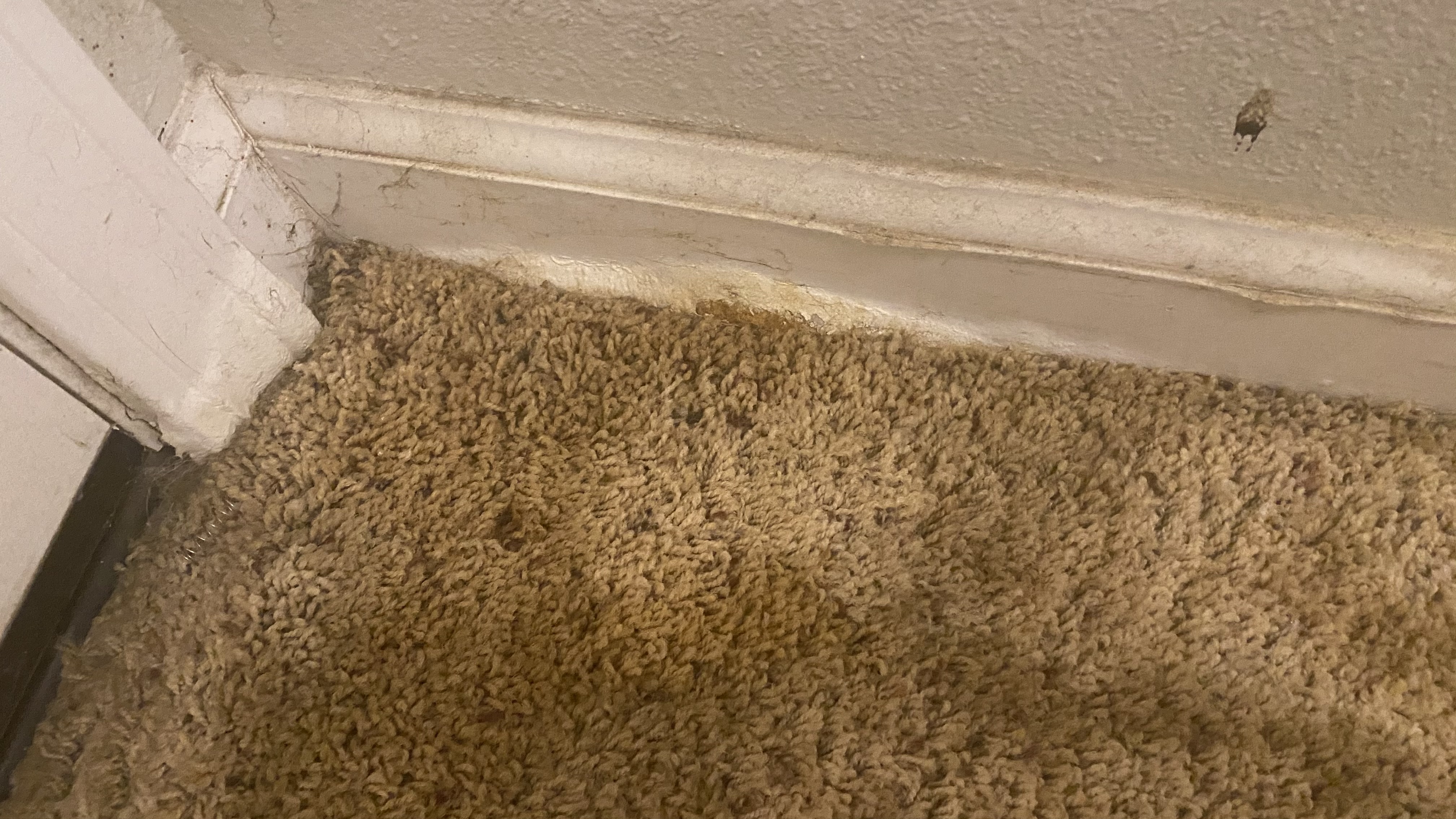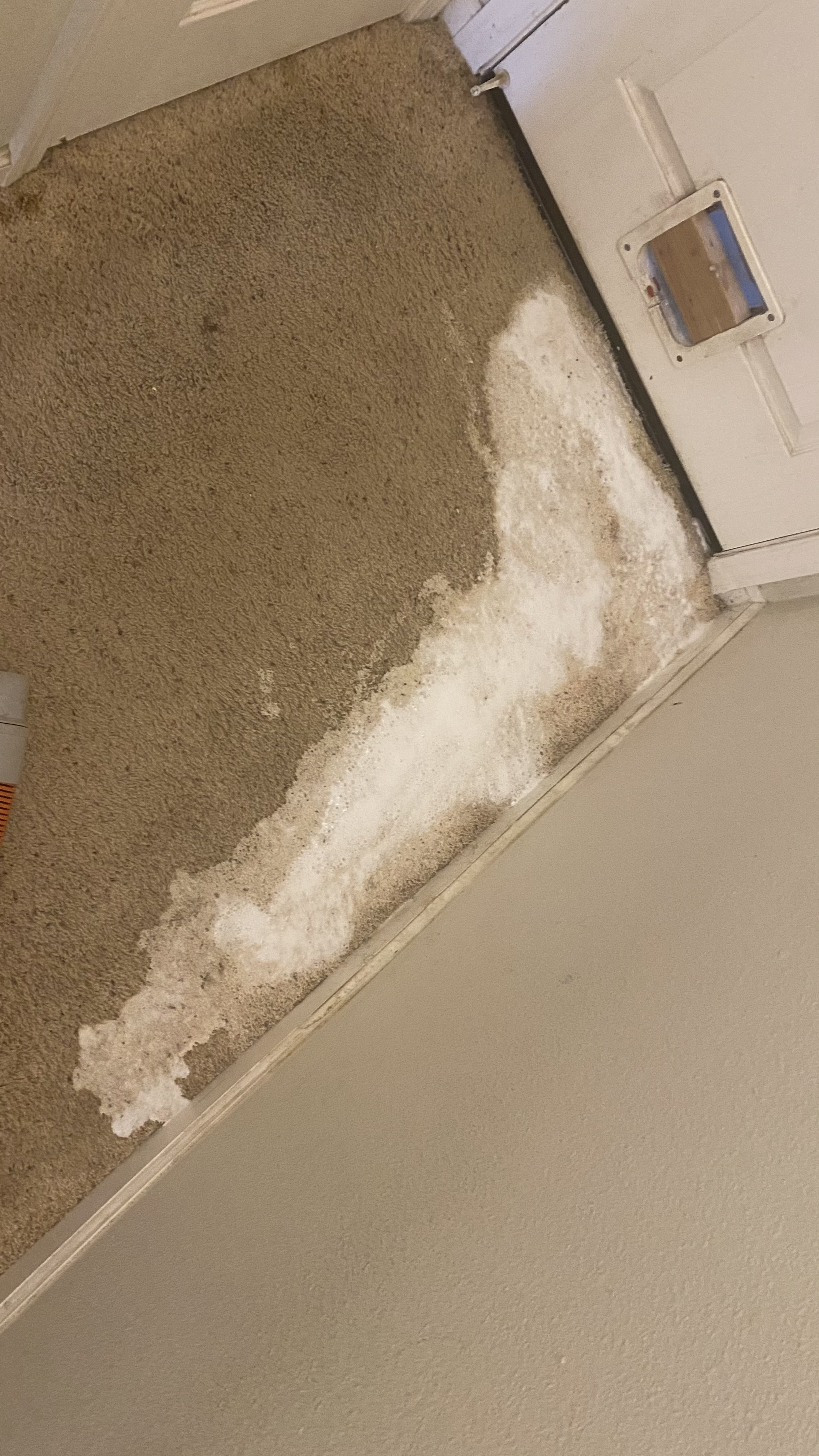 Well, when it rains it pours. Got another big one. White carpet that was very neglected. The resident wanted urine work done but this place was so bad I turned them down. They were insistent that I address the hallway because the smell was so bad. Away to work I went. There was so much urine, the base boards were swollen. See pics below.