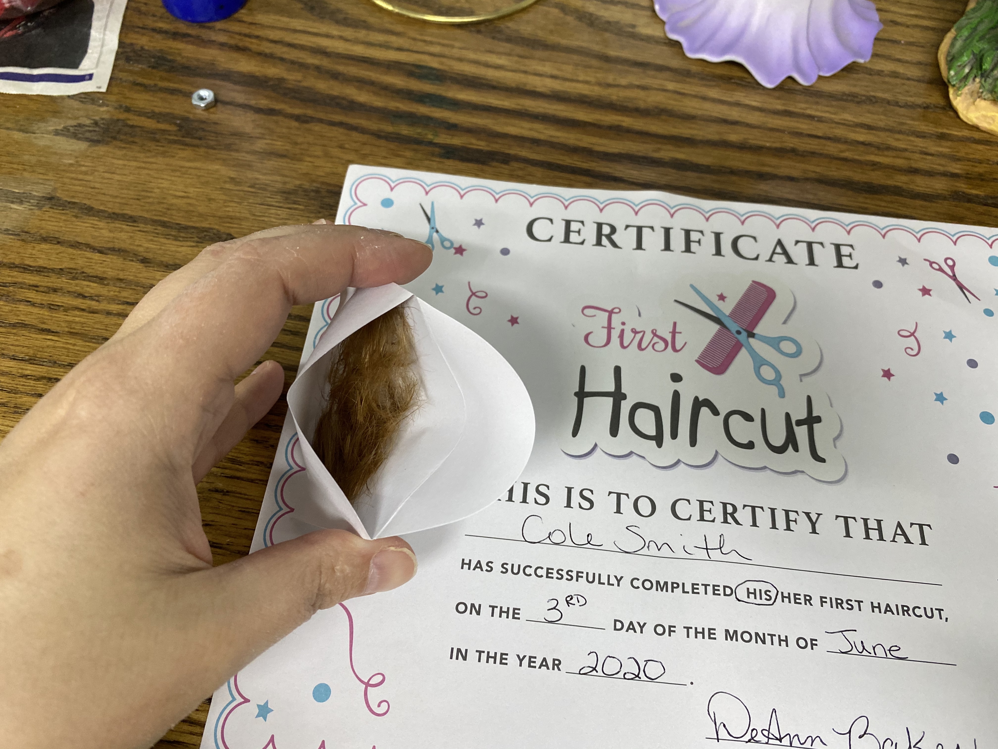 I swear I thought I posted on this thread yesterday and now it’s showing up as a thread I follow, but I can’t find the post. Daddy got his hair cut Tuesday and Cole on Wednesday. You can’t even tell Cole’s got cut but there’s SO MUCH hair in the envelope
